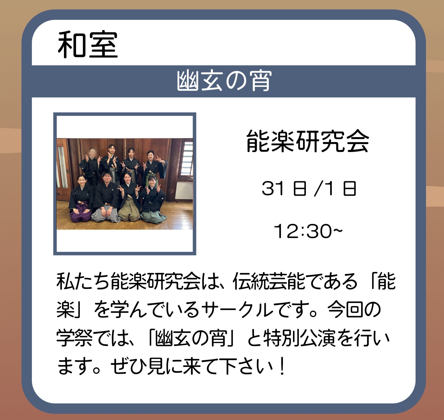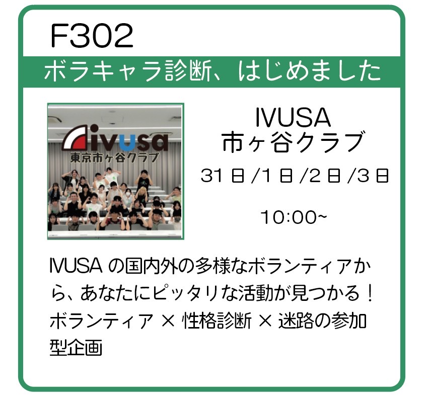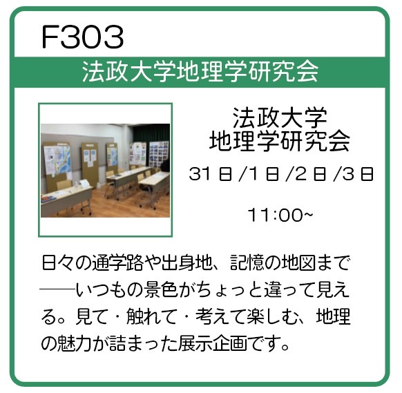 2025/10/31 パンフレット訂正のお知らせ パンフレットの以下の箇所に訂正がございます。申し訳ございませんでした。 P34 幽玄の宵-能楽研究会 P36 法政大学地理学研究会 P36 ボラキャラ診断、はじめました−IVUSA 市ヶ谷クラブ 前の記事 ← 前のページへ ↺サイトトップへ